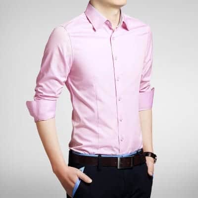 A: Den lyserøde smoking skjorte går godt sammen med mørke farver som sort eller marineblå for et skarpt kontrastfuldt look.